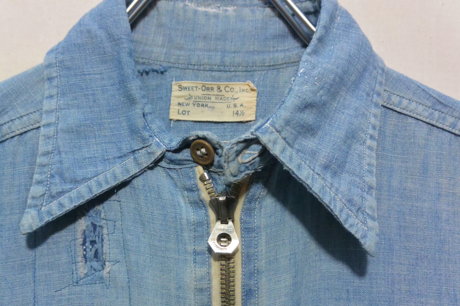 ~40's cotton half zip pullover chambray shirts